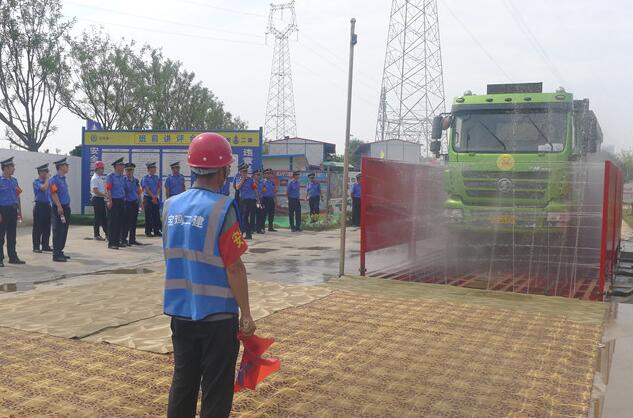 現(xiàn)場講解員從門口圍擋設置太陽能安全警示燈、揚塵污染防治包抓公示牌、門口降塵措施、環(huán)境檢測系統(tǒng)、治污減霾承諾書、臨邊圍擋噴淋系統(tǒng)、霧泡、抑塵灑水車、車輛過水槽、全自動沖洗臺、門禁系統(tǒng),密目網(wǎng)遮蓋裸露場地、施工便道硬化、垃圾清掃、灑水揚塵、渣土清運車輛管理等管理環(huán)節(jié)一一進行了介紹。由于舉措到位、管理到位,從而有效防止場內揚塵污染的產生,達到政府環(huán)保要求。
