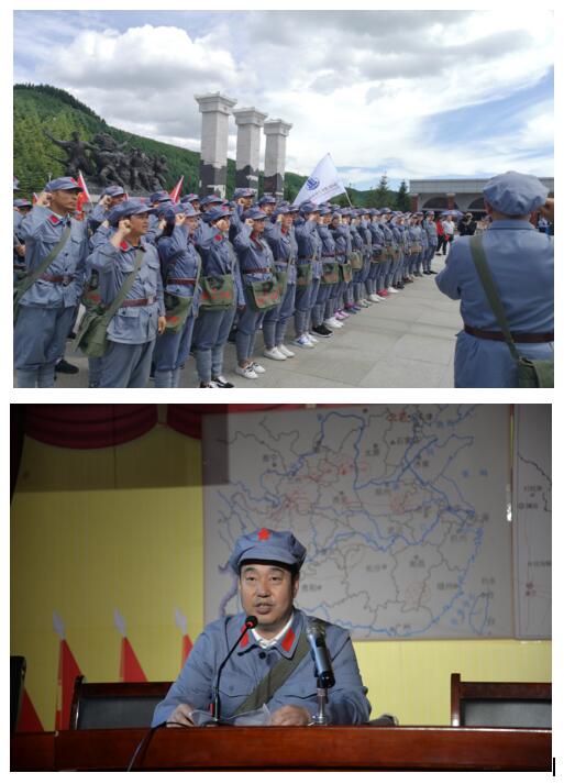 前往六盤山途中,黨員們開展了唱紅歌、講紅色故事、朗誦紅色詩詞等活動,現(xiàn)場氣氛十分熱烈;到達(dá)六盤山后,黨員們穿紅軍服,接過紅一、二、四方面軍軍旗,沿著象征著紅軍二萬五千里長征的紅軍小道,途中經(jīng)過紅軍長征經(jīng)歷的“遵義會議”、“四渡赤水”、“飛奪瀘定橋”、“巧渡金沙江”、“紅軍過草地”、“天險(xiǎn)臘子口”等大事件微縮景觀。在六盤山頂峰廣場三軍會師紅旗墻前,全體黨員重溫了入黨誓詞,列隊(duì)進(jìn)入紅軍長征紀(jì)念館。在紀(jì)念館里,大家合唱了紅歌《歌唱祖國》,上了一次別開生面的黨課,在講解員的帶領(lǐng)下參觀革命文物陳設(shè)。再一次重溫了黨的光輝歷程,接著同志們就地吃了一頓紅軍餐,親身體驗(yàn)到了紅軍長征的悲壯歷程和經(jīng)受的艱難困苦,感受偉大的長征精神。