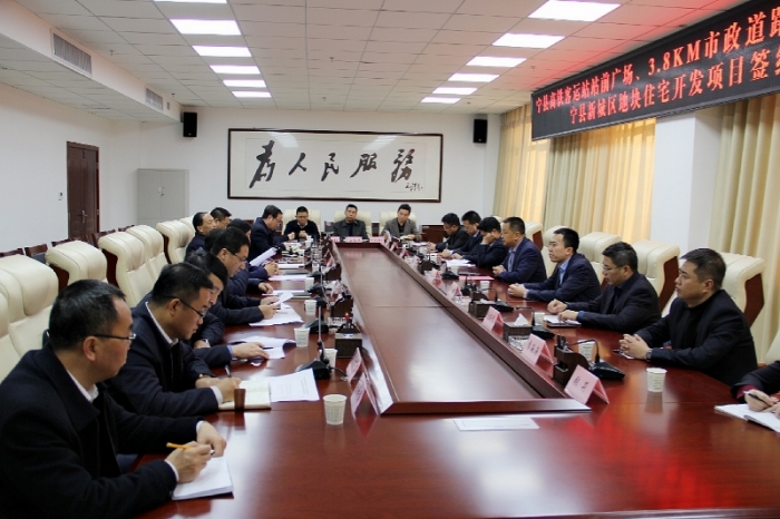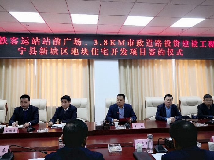 2019年12月4日,寧縣高鐵客運站站前廣場、3.8KM市政道路投資建設(shè)工程及寧縣新城區(qū)地塊住宅開發(fā)項目簽約儀式在寧縣人民政府順利舉行。寧縣縣委書記侯昌明,縣委副書記、縣長李鵬飛,縣委常委、常務(wù)副縣長杜豐,縣委常委馬應(yīng)樂,發(fā)改局、自然資源局、住建局、商務(wù)局等各部門主要負責人出席儀式。公司董事長胥立、總經(jīng)理張小揚、副總經(jīng)理李紅軍、副總經(jīng)理沈為民、副總經(jīng)濟師王紅波出席簽約儀式,相關(guān)部門經(jīng)理和工作人員隨行。