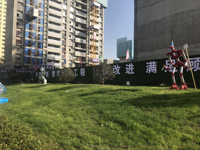 巧布園林式工地。項(xiàng)目在主題施工過程中就對(duì)園林景觀部分已穿插施工完成了一半,實(shí)現(xiàn)了真正意義的“園林工地”。