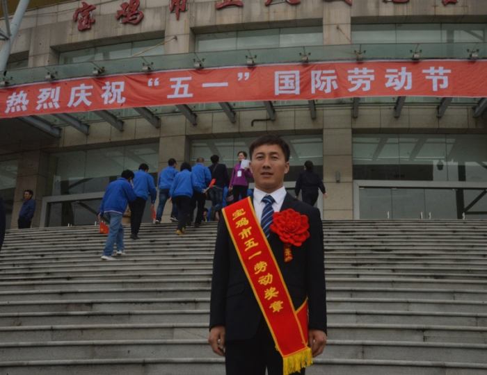 4月30日,寶雞市勞動者之歌暨慶?!拔逡弧眹H勞動節(jié)大會勝利召開,公司劉延強同志被授予“寶雞市五一勞動獎?wù)隆惫鈽s稱號,公司在總部辦公樓前舉行了簡樸隆重的歡迎儀式。公司副董事長、總經(jīng)理胥立,黨委書記景旭東,工會主席王建成等出席儀式,總部全體、寶雞文化藝術(shù)中心項目部管理人員參加。