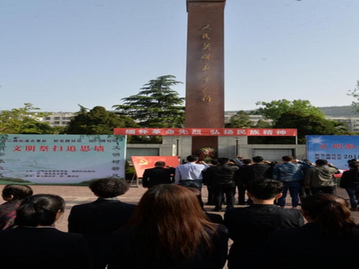 為悼念革命烈士,緬懷先烈的豐功偉績,清明節(jié)前夕,4月3日上午,公司總部黨支部組織黨員員工到寶天烈士紀念館參加新寶路社區(qū)組織的“緬懷革命先烈,弘揚民族精神”2018年度清明節(jié)公祭活動,祭奠為修建寶天鐵路而捐軀的鐵道兵烈士,緬懷先烈偉績??偛坎糠贮h員員工參加祭奠儀式。