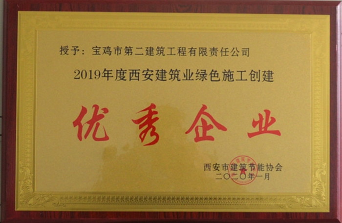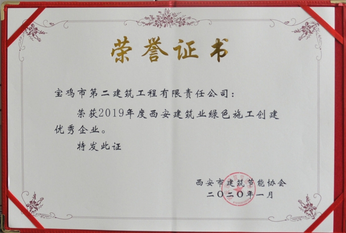 公司榮獲“2019年度西安建筑業(yè)綠色施工創(chuàng)建優(yōu)秀企業(yè)”稱號
