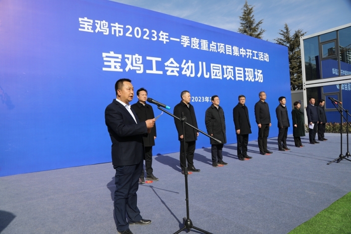 1月28日,寶雞市2023年一季度重點(diǎn)項(xiàng)目集中開(kāi)工活動(dòng)在集團(tuán)公司承建的寶雞市總工會(huì)幼兒園項(xiàng)目現(xiàn)場(chǎng)舉行,市委書(shū)記楊廣亭下達(dá)開(kāi)工令,市長(zhǎng)王勇、市人大常委會(huì)主任景耀平、市政協(xié)主席劉榮賢、市委副書(shū)記段小龍參加活動(dòng)。市委常委、常務(wù)副市長(zhǎng)賈珉亮主持開(kāi)工活動(dòng)。市人大常委會(huì)副主任、市總工會(huì)主席陳小平介紹項(xiàng)目情況。