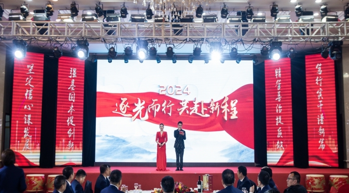 集團(tuán)公司高層領(lǐng)導(dǎo)、中級(jí)管理人員、受表彰獎(jiǎng)勵(lì)的優(yōu)秀單位和個(gè)人、總部全體及2023年度新員工,共計(jì)300余人參加了會(huì)議。副總經(jīng)理、總會(huì)計(jì)師嚴(yán)海軍主持會(huì)議。