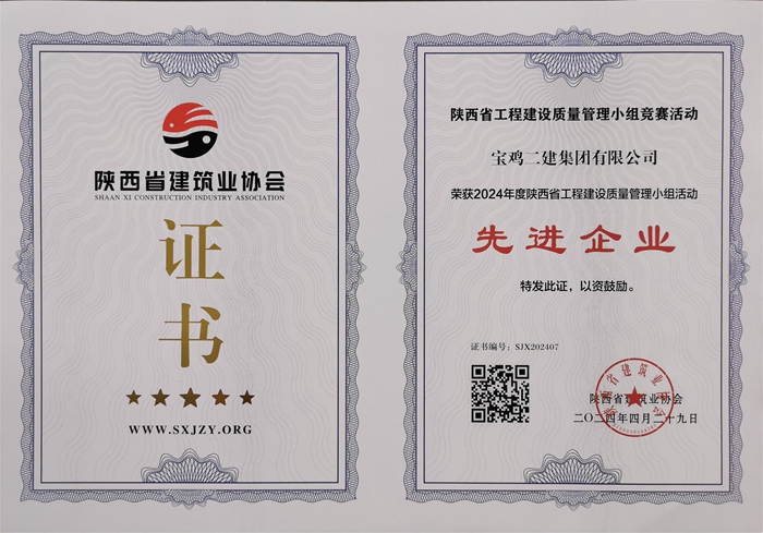 2024年度陜西省工程建設(shè)質(zhì)量管理小組活動先進企業(yè)