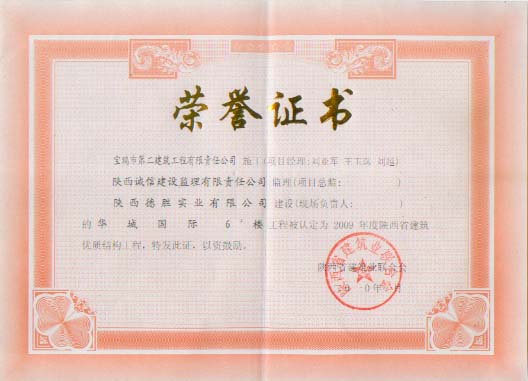 2009年省級(jí)優(yōu)質(zhì)結(jié)構(gòu)工程(華城國際)